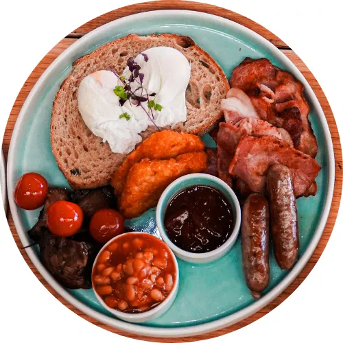 Start your day with an irresistible selection of options, like the classic Avo on Toast, served with seeded bread, smashed avocado, feta cheese, and microgreens, or the sophisticated Eggs Benedict, featuring your choice of bacon or salmon, poached eggs, and a touch of hollandaise sauce. For those craving something more hearty, The Big Fry offers a full selection of eggs, bacon, sausage, mushrooms, and tomatoes. Vegetarian and gluten-free options are also available, ensuring an inclusive experience.